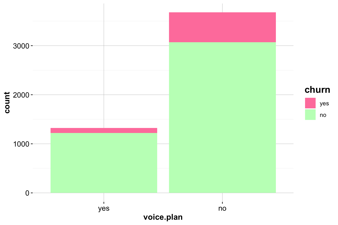 - The proportion of customers subscribed to the International Plan.