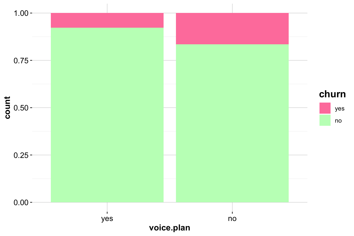 voice.plan) differs between churners and non-churners. Use a two-sample Z-test in R and interpret the results, considering the implications for customer retention strategies.Investigate whether marital status (